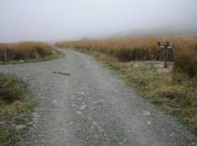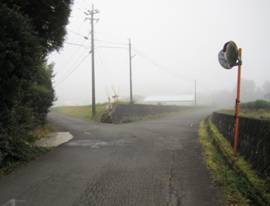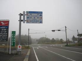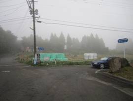 九重町大字田野の交差点 7時35分 九重IC〜四季彩ロードを経て飯田高原へ。 濃霧なので登る気が失せてしまい長者原へ。