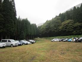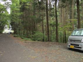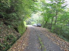 広場に出た。 15時21分 地元の方の車がある。更にまっすぐ進む。