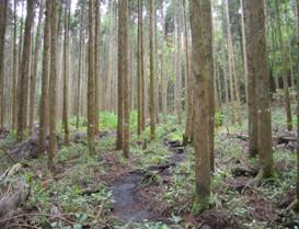 集材路(平治岳への分岐) 15時33分 この集材路は、平治岳北登山口にも続いている。次回平治岳へ向かう場合は、ここを歩いてみたい。