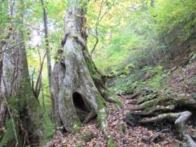 滝の撮影後、更に先へ進む 10時06分 時折、趣のある大きな木が・・・。 ところどころに秋の花が咲いている。