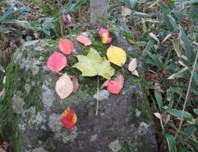 落ち葉のアート 10時17分 岩の上に誰かが綺麗な落ち葉で遊んでいた。