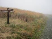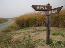 坊ヶツルへの分岐 10時38分 霧の中でもわかりやすい表示がしてある。