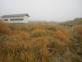 3、一面ススキの坊ヶツル 10時44分 見えるのはススキと真白な霧(笑)