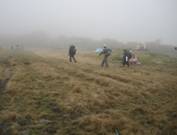 4、濃霧の段原 約100人が休憩していた(驚)。休まずに大船山頂上を目指した。 12時07分
