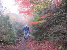 | 大船山の紅葉は濃霧のために見ることは出来なかったが、深まりゆく秋の「暮雨の滝」の写真が撮影出来、 また、真っ赤に色付いたモミジも観賞でき、秋の久住を満喫できた。 でも、この濃霧のリベンジはいつか必ず・・・・。 大船山から見下ろした御池(おいけ)の紅葉の写真を撮ってみたい。 |