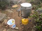 5、大船山山頂 12時31分 1786m お腹がペコペコ。山頂で温かいカップラーメンを頂く。ソーセージも茹でて食べた。