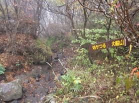 大戸越への分岐 15時20分 6月、友人と男池から登った平治岳は大戸越経由だった。注意しないと見落としてしまう。