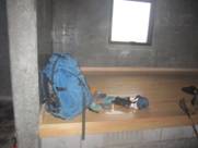 管理休憩舎で暫し休憩 14時27分 中は登山客でごった返していた。ここでレインウェアを着て、下山に備えた。