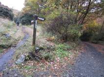 8、大船林道への分岐 15時11分 直進すると「暮雨の滝」経由の、登って来た道だが、右に曲がり大船林道を歩くことにした。