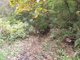 最初は植林の中を歩く 8時49分 歩いていると、足元に栗がたくさん落ちていた。最初は歩きやすいのだが、この先は・・・。