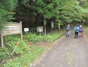すぐに2度目の分かれ道 8時06分 真っ直ぐ行くと俳優の榎木孝明美術館がある。 大船林道の標識通り、ここを左に進む。細い一本道を行くと吉部の登山口に突き当たる。
