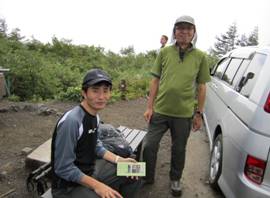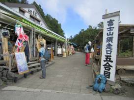 2、須走口五合目登山口 出発 8時58分 我々は今から出発だが、茶店ではすでに下山したばかりの登山者達が休憩していた。