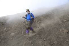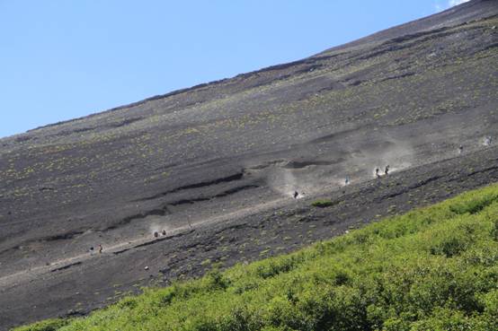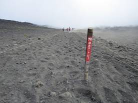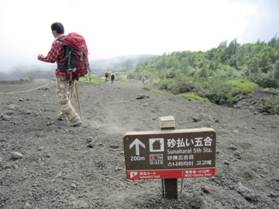 小屋を出発して左を見ると、遠くで「砂走り」をしている光景が目に入った。砂塵が舞っている。