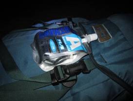 渋滞を離れ栄養補給 2時51分 ザックを下して一休み。挾間師匠から差し入れて頂いたゼリーを食べた。とても旨く、そして元気が出た。 見上げると空は満天の星、オリオン座が一際明るく光る。それに加え、三日月の月明りで雲海がうっすらと光って見える。なんと神秘的な風景であろうか。この光景はしっかりと目に焼き付いている。 |