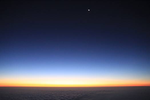 空には三日月、雲海と空の間は徐々に赤く染まって雰囲気満点だ。