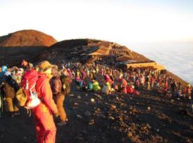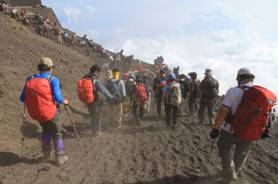 空前の富士登山ブームと言われる今年は、8月まで既に28万人の登山者を数えた。 |