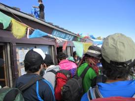 胸突江戸屋前は大混雑 皆さん準備で大忙し。 目が覚めてから調子がよくない。少し頭痛がしてきた。やはり寝不足と高山病?なのか。