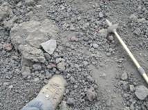 噴火口 7時11分 まだ雪が残っている部分がある。まるで月面のようだ。直径700m深さ250mのすり鉢形。