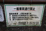 吉原林道に出会う 14時47分 満干越からすぐに吉原林道に出会った。 これからは頂吉まで気楽な林道歩きとなる。 林道は最近利用されていないらしく、かなり荒れていた。 倒木落石 通行注意 |