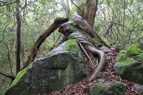 大岩に木の根が・・・ 自然の不思議、力強さを感じる