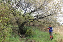 ワラビ採り 13時22分 昼食後、赤牟田の辻を出発し焼立山に向かうが、途中でワラビを採って歩行が停滞。 ワラビに夢中 |