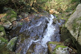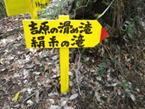13、満干越(みちひごし) 14時45分 満干の語源は滝上部の岩間から不定期に吹き上がる間欠泉による川の水量の増減からきているらしい。 この分岐から頂吉方面へ下る。 あとひと踏ん張り |
