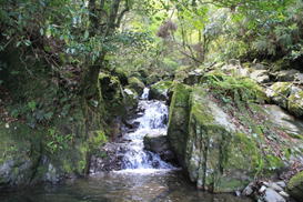 せせらぎロード 14時38分 木漏れ日の中、川の流れる音を聞きながら気分よく下山していく。 軽快に下る |