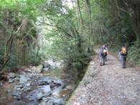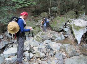 | 三週間ぶりの福智山である。前回は七重の滝コースで登ったが、今回は頂吉の登山口から福智山を目指した。福智山へのルートはいろいろあるが、このルートを利用する人は少ないそうだ。 川沿い(山の神川)に進んでいくが、結構面白く穴場である。 |
