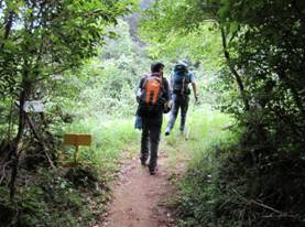 5、福智平 11時09分 鱒淵ダムまで3.3キロの表示。福智平はとても花が多い場所だ。九州自然歩道を下る。