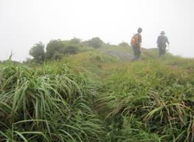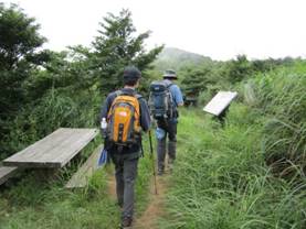 縦走路は草ぼうぼう 9時12分 オミナエシなど花ががたくさん咲いていた。 5月以降はこの道は覆い茂って歩きにくい。