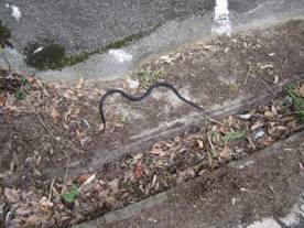 カラスヘビ発見 13時02分 今回も出てきました。ニョロニョロと・・・。1メートルはあったと思う。