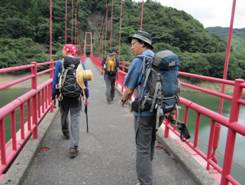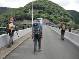 1、頂吉(かぐめよし) 6時52分 鱒淵ダムにて集合。ダムに車を1台デポして頂吉まで4人で移動。「頂吉少年自然の家」付近の川沿いに車を停めた。今日は頂吉〜月の平〜福智山〜鱒淵ダムのコースを歩く。早朝なのでまだ誰も来てない。暑い夏が続いているが、今日は幾分涼しい気がする。天気予報は午前中晴れだが、午後は雨になる予報が出ている。なるべく早目に下山をしたい。 |