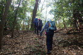 | 1、頂吉(かぐめよし)少年自然の家 7時40分 〜 2、紫川起点 〜 3、満干越 〜 4、新城 〜 5、茶臼山 〜 6、満干越 〜 7、満干谷集落跡(作業小屋) 〜 8、満干谷間歇冷泉(昼食) 〜 9、満干谷集落跡(作業小屋) 〜 10、紫川起点 11、頂吉(かぐめよし)少年自然の家 13時55分 |