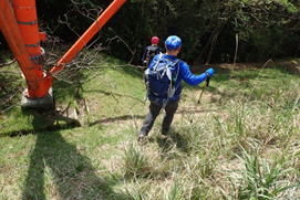 | 満干谷へ下る 12時41分 滑り易い急斜面を慎重に下る |