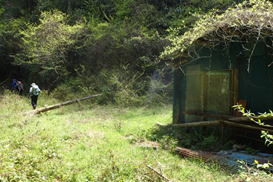 7、満干谷集落跡(作業小屋) 11時00分 この一帯が満干谷集落跡になる |
