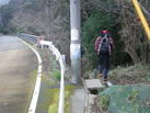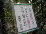 ガードレールの裏側から 7時50分 車で走って来た周回道路を戻るようにして登山口に向かう。 「ぜぜり橋」手前のガードレールの裏側から登山道が伸びている。 サル出没に注意! |