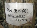 2、瀬々里(ぜぜり)の渡し 7時52分 ガードレールの裏側から山中に入って行くと、すぐに雰囲気のいい空間になった。慎重に川を渡る。福智山まであと2時間と表示がある。 気合を入れる |