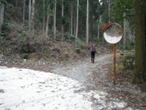 頓野林道に出会う(2回目) 8時08分 再度林道に出会った。林道をショートカットして上って行く形だ。右に進むと、またカーブミラーがある。 そこを右に入って行く。 カーブミラーから |