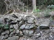 炭焼き窯跡を通過 8時49分 こんな急峻な場所にも炭焼き小屋があったのか! ちょっと驚きだ! 石組みが残る |