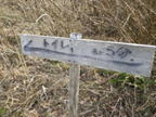 三叉路を内ヶ磯方面へ 12時25分 先程の三叉路に戻ってきた。 表示をしっかり確認して右の内ヶ磯方面に進む。 文字が薄い |
