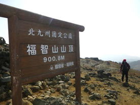 6、福智山山頂 9時46分 901m 福智山ダム駐車場から山頂まで1時間59分だった。 見回すと時間が早いのか登山者は5人程度で、ちょっと寂しい山頂だった。 福智神社上宮 |