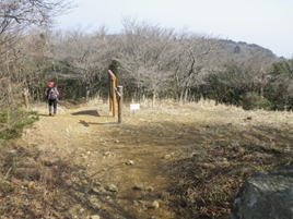 三叉路の分岐 11時21分 左は内ヶ磯へ下る道になるが、この三叉路から目標である右の雲取山方面に進む。山頂を踏んだ後はまたここまで戻ってくる。 標識を確認 |