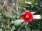 福智山ダムの周回道路を歩く 13時19分 雲取山登山口から左に進み、駐車場を目指してのんびり周回道路を歩く。沿道には椿の植栽があった。 ツバキ |