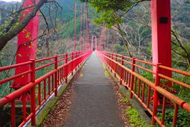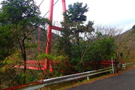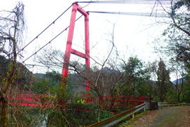ます渕橋を渡る 13時10分 本日の登山の余韻に浸りながら周回道路を歩いていると、いつの間にか橋に到着。 ワイヤーが太い |