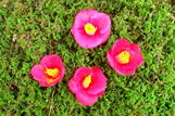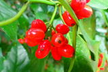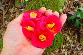 枯葉積もる遊歩道 8時32分 彩が少ない冬の季節。草花もひっそり春を待っている。その沿道に赤く光るものがある。 アオキの赤い実 |