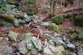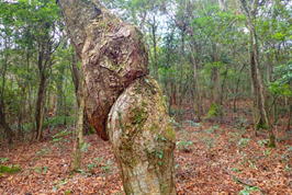 奇妙な形の木と出会う 10時12分 時々コブのある木を見かけるが、この木は幹が巻いている。面白い! カラス落に近づくとこんな木も現れた! 不思議 10時25分 |