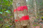 木に赤いペンキB 10時05分 道筋がハッキリしない時は全体を見渡すことによってなんとなく見えてくる。 ここまではOK |