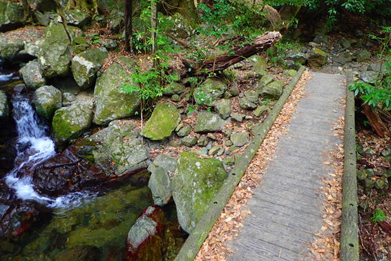 大杉渡り 12時01分 快調に下山。気が付くと大杉渡りに到着。ここは文字通り大きな杉の木が目立つ。 休憩せず通過 |
