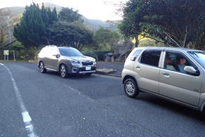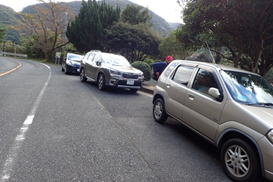 車両通行止めの杭をすり抜ける 13時34分 |