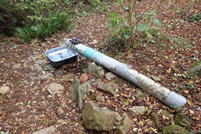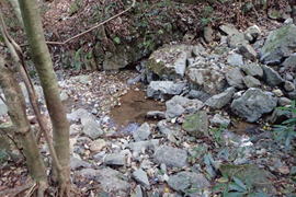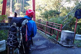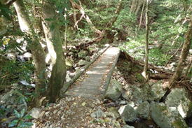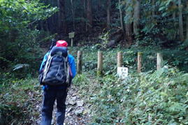 車両通行止めの杭をすり抜ける 7時50分 これより本格的な登山道。最近は土が流れて道が細く悪くなっている。危険な場所もあるので、崖から川に落ちないように注意! |